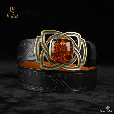 The "Golden Knot" Belt is a tribute to the legendary wealth of the Spanish Empire in the late 16th century. During this era, a belt was more than just a functional item; it was a pedestal for a gentleman’s or lady’s status, designed to carry heavy purses, keys, or ceremonial rapiers. This piece is crafted from premium, vegetable-tanned Cordovan leather in a deep obsidian black. The surface is hand-tooled with subtle geometric patterns. The centerpiece is the buckle: a massive, architectural masterpiece cast in antiqued gold-finished brass. It features an interlocking knot design, symbolizing the global trade routes of the period. At the heart of the buckle is a large, square-cut Baltic amber stone, polished to a mirror finish. The amber acts as a warm, organic contrast to the cold metal and dark leather. To ensure durability, the interior of the belt is lined with soft saffron-colored suede. This accessory is a perfect balance of rugged utility and courtly elegance. Keywords: Spanish Renaissance, 16th century fashion, Cordovan leather, Antique brass buckle, Baltic amber inlay, Historical belt, Tooled leather, Luxury accessories, Golden Age Spain, Handcrafted belt. __________________________________________________________________________________________________________________________ Пояс «Золотой узел» — это дань уважения легендарному богатству Испанской империи конца XVI века. В ту эпоху пояс был не просто функциональным предметом; он служил своего рода постаментом для демонстрации статуса джентльмена или дамы, будучи предназначенным для ношения тяжелых кошельков, ключей или церемониальных рапир. Это изделие изготовлено из первоклассной кордованской кожи растительного дубления в глубоком черном цвете («обсидиан»). Поверхность украшена деликатным ручным тиснением с геометрическими узорами. Центральным элементом является пряжка — массивный архитектурный шедевр, отлитый из латуни с отделкой под антикварное золото. Дизайн пряжки представляет собой переплетенный узел, символизирующий глобальные торговые пути того периода. В центре пряжки закреплен крупный балтийский янтарь квадратной огранки, отполированный до зеркального блеска. Янтарь выступает теплым органическим контрастом холодному металлу и темной коже. Для долговечности внутренняя сторона пояса подбита мягкой замшей шафранового цвета. Этот аксессуар — идеальный баланс между суровой практичностью и придворной элегантностью. Ключевые слова: испанский ренессанс, мода XVI века, кордованская кожа, латунная пряжка, инкрустация янтарем, исторический пояс, кожа с тиснением, роскошные аксессуары, Золотой век Испании, пояс ручной работы __________________________________________________________________________________________________________________________ expomod.kz